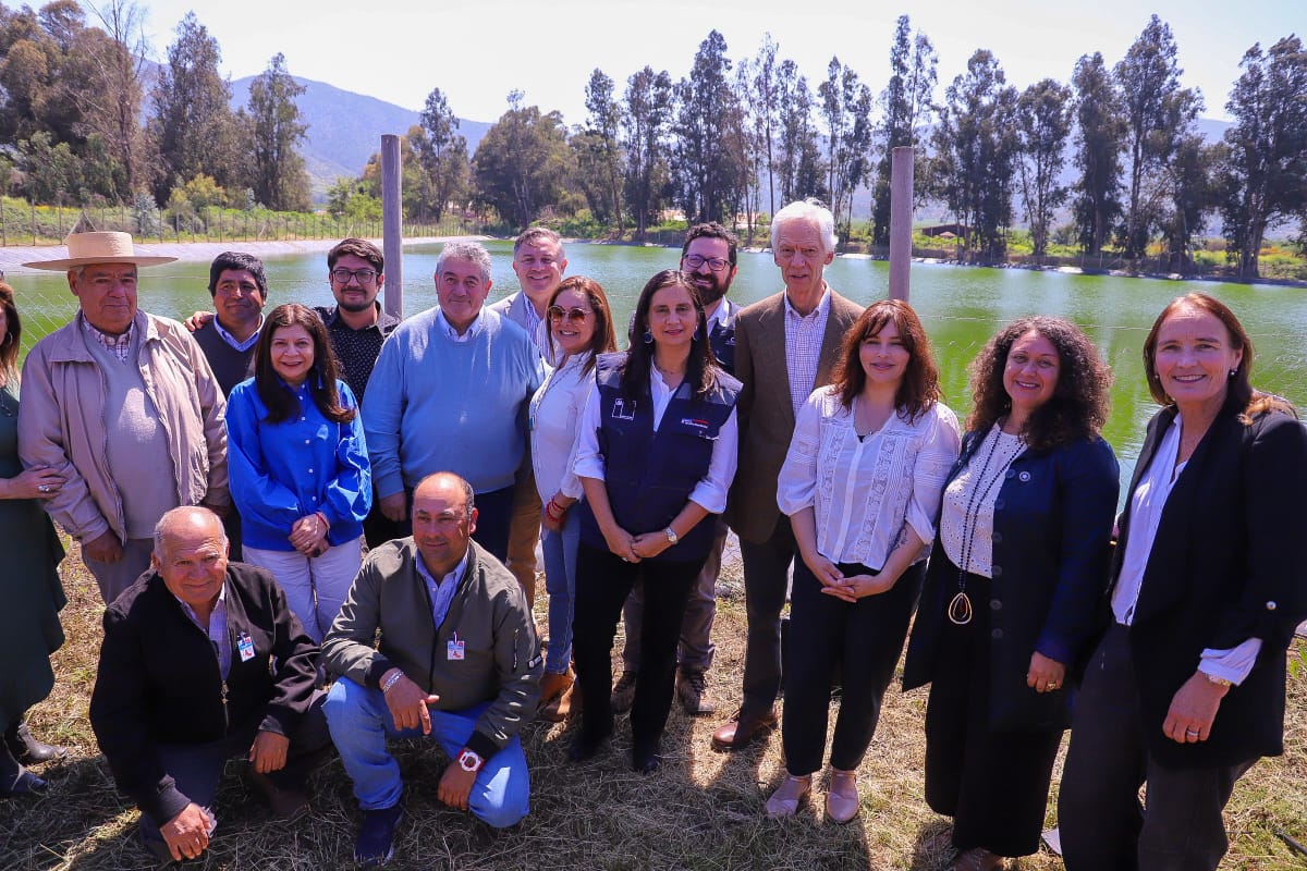 María Pinto, 3 de octubre de 2025. – La ministra de Agricultura, Ignacia Fernández, junto al director ejecutivo de la Comisión Nacional de Riego (CNR), Wilson Ureta; la alcaldesa de María Pinto, Jessica Mualim; el delegado presidencial provincial de Melipilla, Bastián Alarcón; y la Seremi de Agricultura de la RM, Montserrat Candia, encabezaron la inauguración de las obras de rehabilitación del tranque ex CORA “El Luchador”, perteneciente a la Asociación del Canal Las Mercedes.