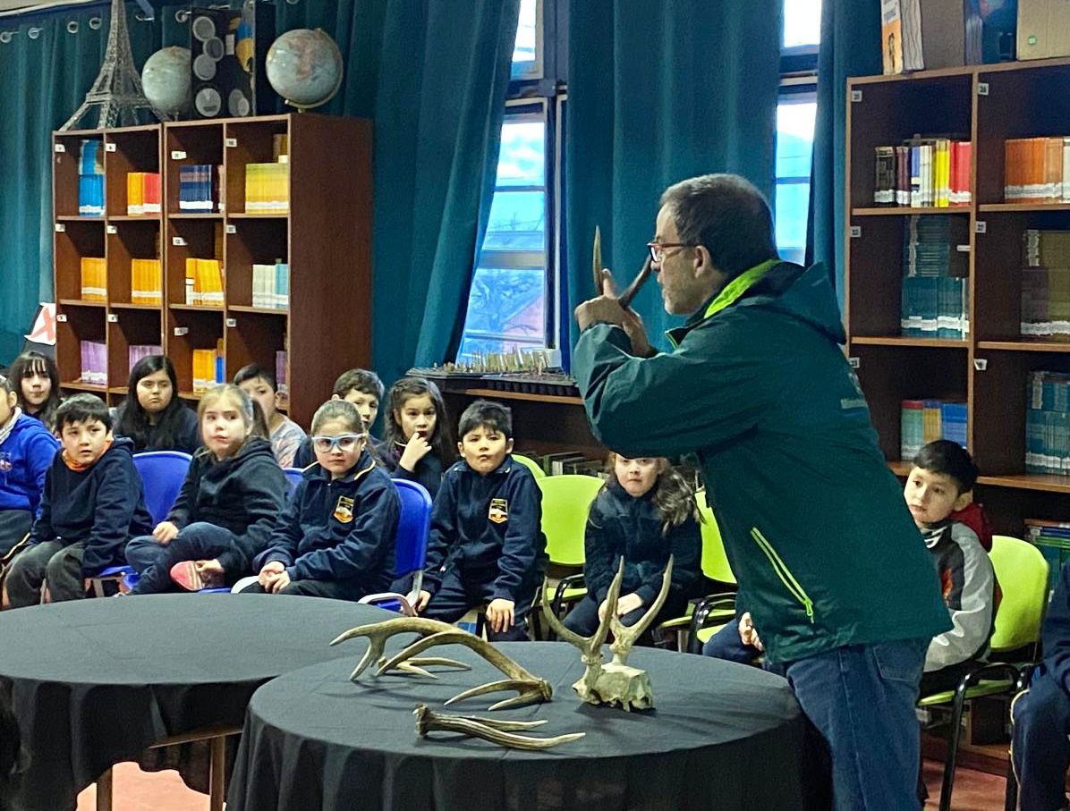Por otro lado, en el Parque Nacional Cerro Castillo, Ruiz acompañó a guardaparques CONAF y miembros de la Fundación Manke a realizar actividades lúdicas para enseñar sobre la especie huemul desde su propio territorio, donde esta vez los estudiantes de la Escuela Aonikenk de la comuna de Puerto Ibáñez fueron los protagonistas.